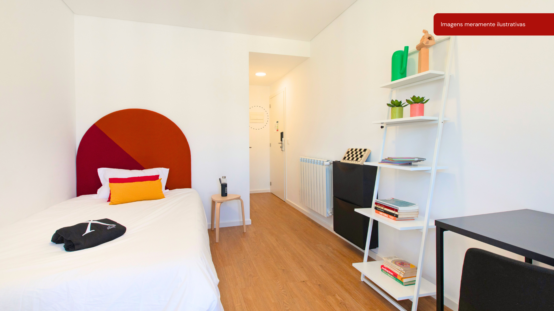 • Cama Individual • Roupeiro • Secretária e Cadeira • Estante para Livros • Mini Frigorífico • Wi-fiCaracterísticas